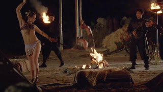 Sinbad discovers an ivory scroll case in the desert camp of the evil sorcerer Al-Jibar, leading him to the golden head of the Colossus of Rhodes.